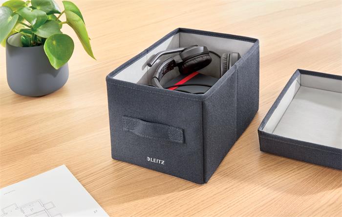 Hlavná stránkaKancelárske potrebyBalenie a odkladanieOdkladacie boxy, škatule a košíkyÚložný box, textilný, rozmer S, LEITZ "Fabric", zamatová sivá