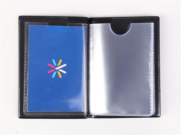 Puzdro na osobné doklady s kapacitou na 10+2+1 preukazy - tvrdý, vzorovaný PVC kryt - stojatý formát - počet listov: 10 - rozmery: 73×102 mm - hmotnosť: 46 g - použiteľné pre typy dokladov: plastový občiansky preukaz, karta trvalého pobytu, plastový vodičský preukaz, študentský preukaz, daňová karta, bankové a kreditné karty, plastové zbieracie a vernostné karty, iné doklady s rozmermi zhodnými s bankovou kartou.