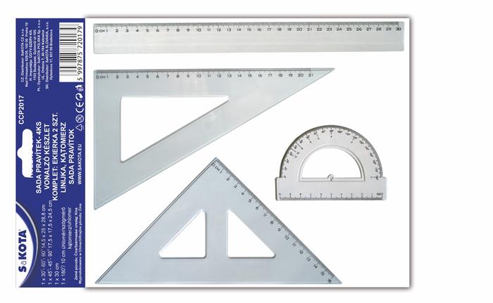 Pravítko, sada, plastové, 4 ks, SAKOTA