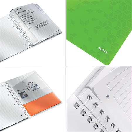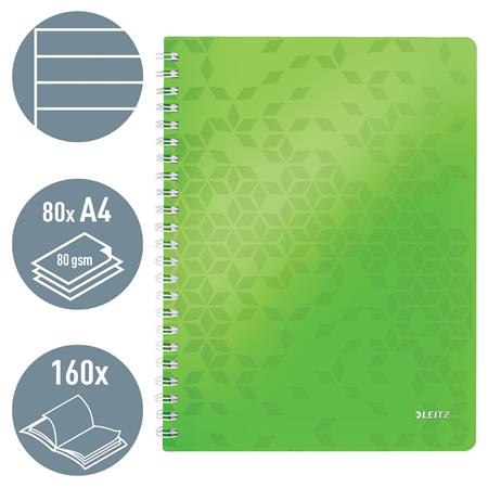 Špirálový zošit, A4, linajkový, 80 listov, LEITZ "Wow", zelená