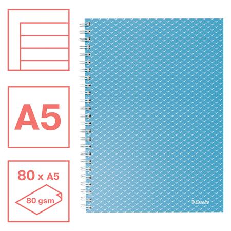 Špirálový zošit, A5, linajkový, 80 listov, ESSELTE  "Colour`Breeze", modrý