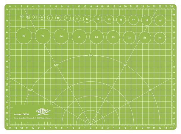 - robustná rezacia podložka je potlačená na oboch stranách mriežkou s rôznymi uhlami a kruhmi
