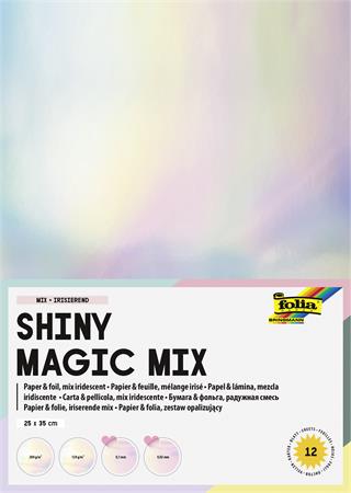 Dekoračný kartón s fóliou, sada, irizujúci, 25x35 cm, 6+6 listov, FOLIA