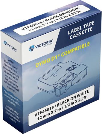 Páska do štítkovača 12 mm x 7 m, kompatibilita: DYMO D1, VICTORIA TECHNOLOGY, biela-čierna