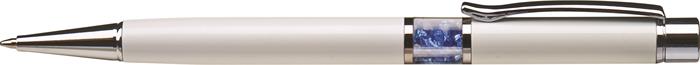 Guľôčkové pero, Crystals from SWAROVSKI®, biele, so zafírovo modrými krištáľmi v strede tela, 14cm