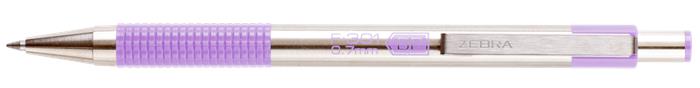 Guľôčkové pero, 0,24 mm, stláčací mechanizmus, nerezová oceľ, farba tela: pastelová fialová, ZEBRA "F-301", modré