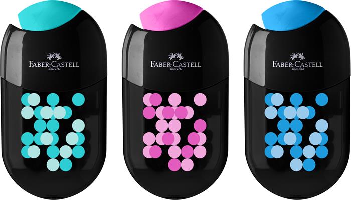 Strúhadlo, displej, dvojdierové, 2 zásobníky, FABER-CASTELL, mix farieb