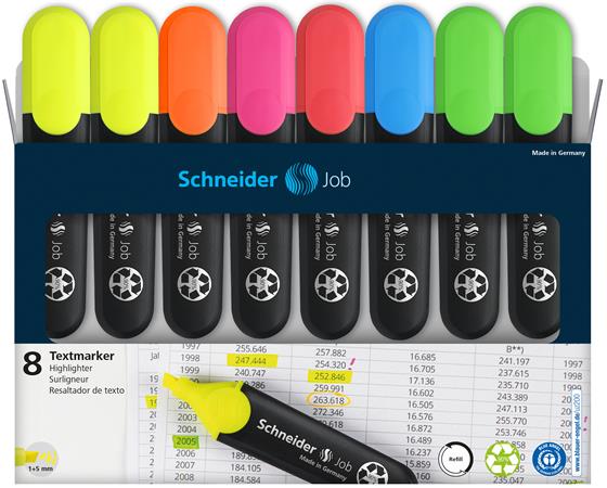 Zvýrazňovač, sada, 1-5 mm, SCHNEIDER "Job 150", 6+2 farieb