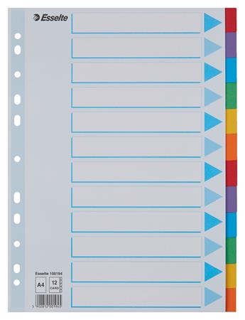 Register, kartón, A4, 12 dielny, popisovateľná predná strana, ESSELTE "Standard", farebný