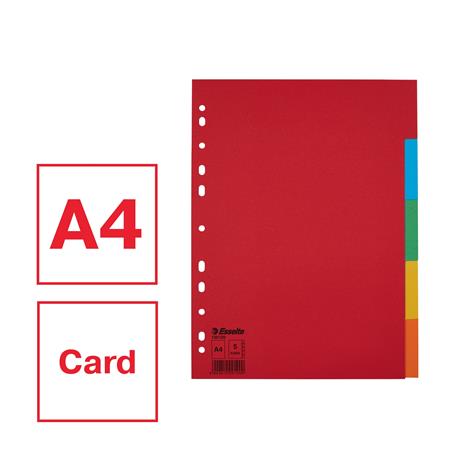 Register, kartónový, A4, 5 dielny, ESSELTE "Economy", farebný