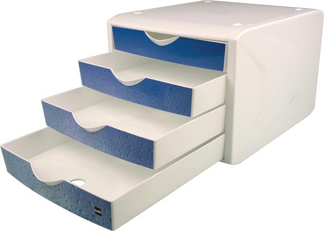Zásuvkový box na dokumenty, plastový, 4 zásuvky, HELIT "Chameleon", biela-modrá