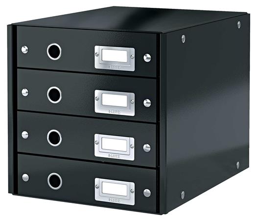 Zásuvkový box, polaminovaný kartón, 4 zásuvky, LEITZ "Click&Store", čierna