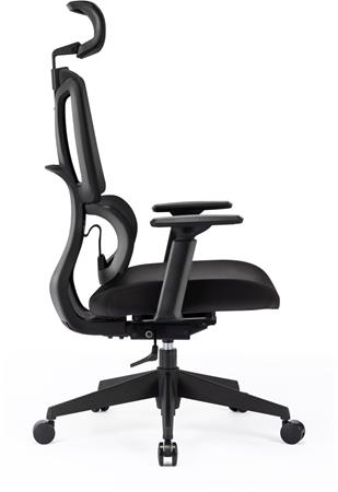 Kancelárska otočná stolička, čierna sieťovaná opierka, čierny látkový sedák, čierny plastový rám a kríž, "Famora"