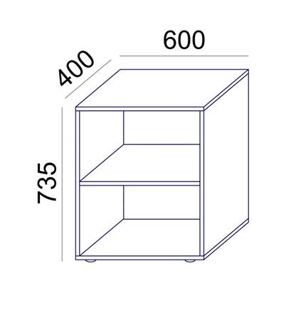 Úložný prvok má výšku rovnakú ako písacie stoly, otvorená s jednou poličkou.