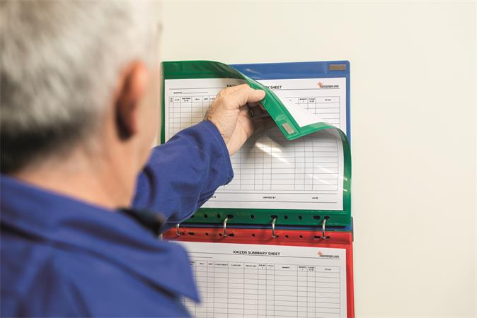 Farebná perforované vrecko pre LEAN tematickú prezentáciu informácií v priemyselnom prostredí. -hrubé a odolné, obojstranné, uzatvárateľné magnetické vrecko -s 11-dierkovým euro dierovaním -extrémne flexibilné a dlhotrvajúce -jednoduchá a efektívna manipulácia -špecificky pre priemyselné použitie -ideálne na umiestnenie pracovných metód, procesov, denných záznamov, pracovných pokynov , atď.