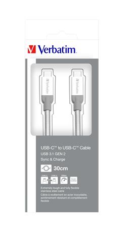 USB kábel, USB-C 3.1 - USB-C , 30 cm, VERBATIM, strieborná