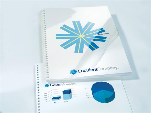 Priehľadný predný obal dodáva zviazanému dokumentu moderný vzhľad a chráni strany pred poškodením.